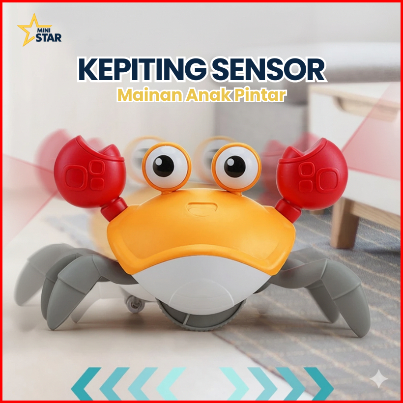 Ministar Mainan Kepiting Lari Sensor Musik Lampu Lucu Mainan Edukasi Anak Bayi Interaktif Rechargeable Terbaru 2025