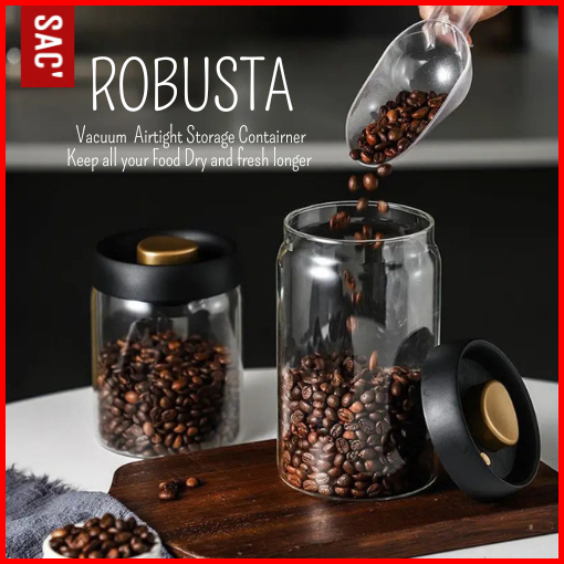 Robusta Coffee Canister Glass Storage Toples Kedap Udara Toples Kaca Vakum Aesthetic Kotak Toples Penyimpan Toples Kopi