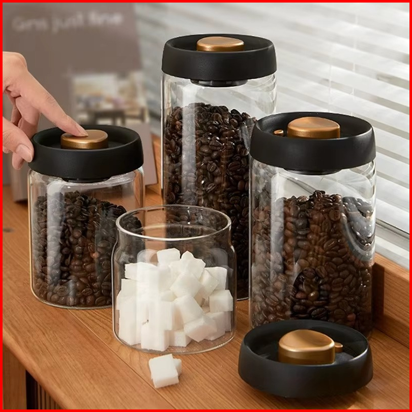 Cafetera Toples Kaca Biji Kopi Barista Coffee Beans Vacuum Sealed Lid Hitam Variasi - Se41