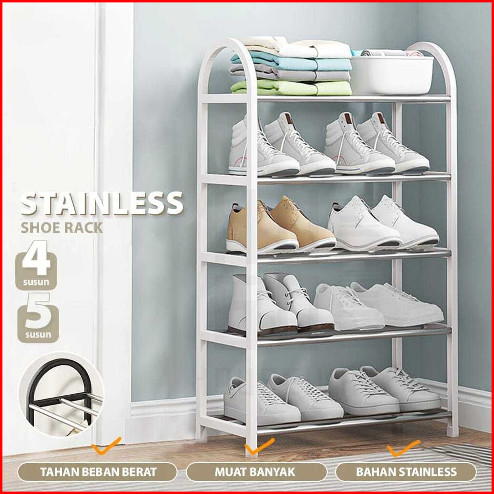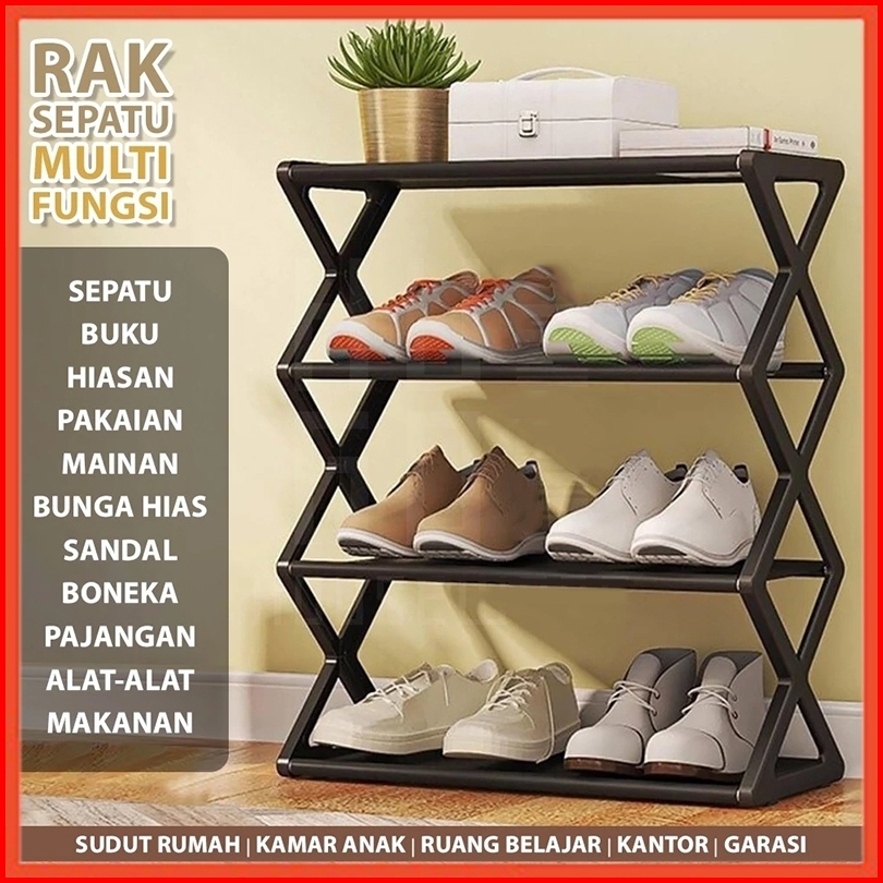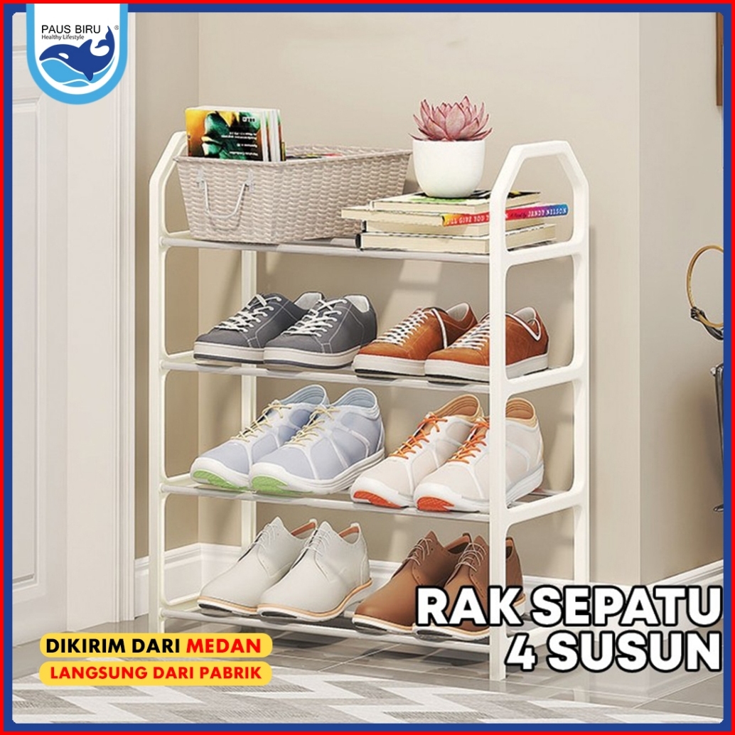 Paus Biru - Rak Sepatu 4 Susun Serbaguna - Rak Sandal Minimalis Hitam Putih -rak Serbaguna 4 Tingkat