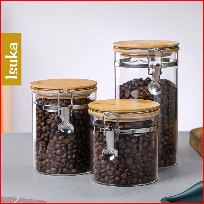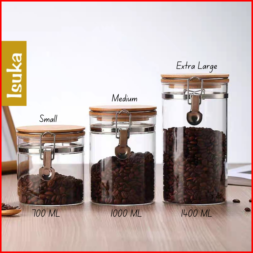 Toples Kaca Kopi Kedap Udara Toples Aesthetic Toples Kue Kering Wadah Penyimpanan Jar Kaca Bening Tempat Penyimpanan Mak