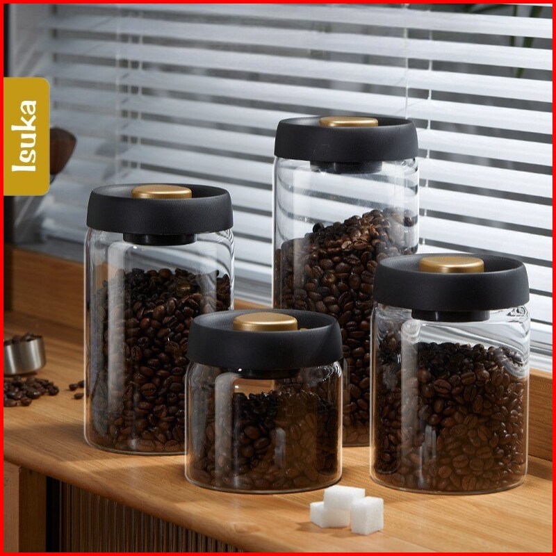 Toples Kaca Kopi Kedap Udara Toples Aesthetic Toples Kue Kering Wadah Penyimpanan Jar Kaca Bening Tempat Penyimpanan Mak