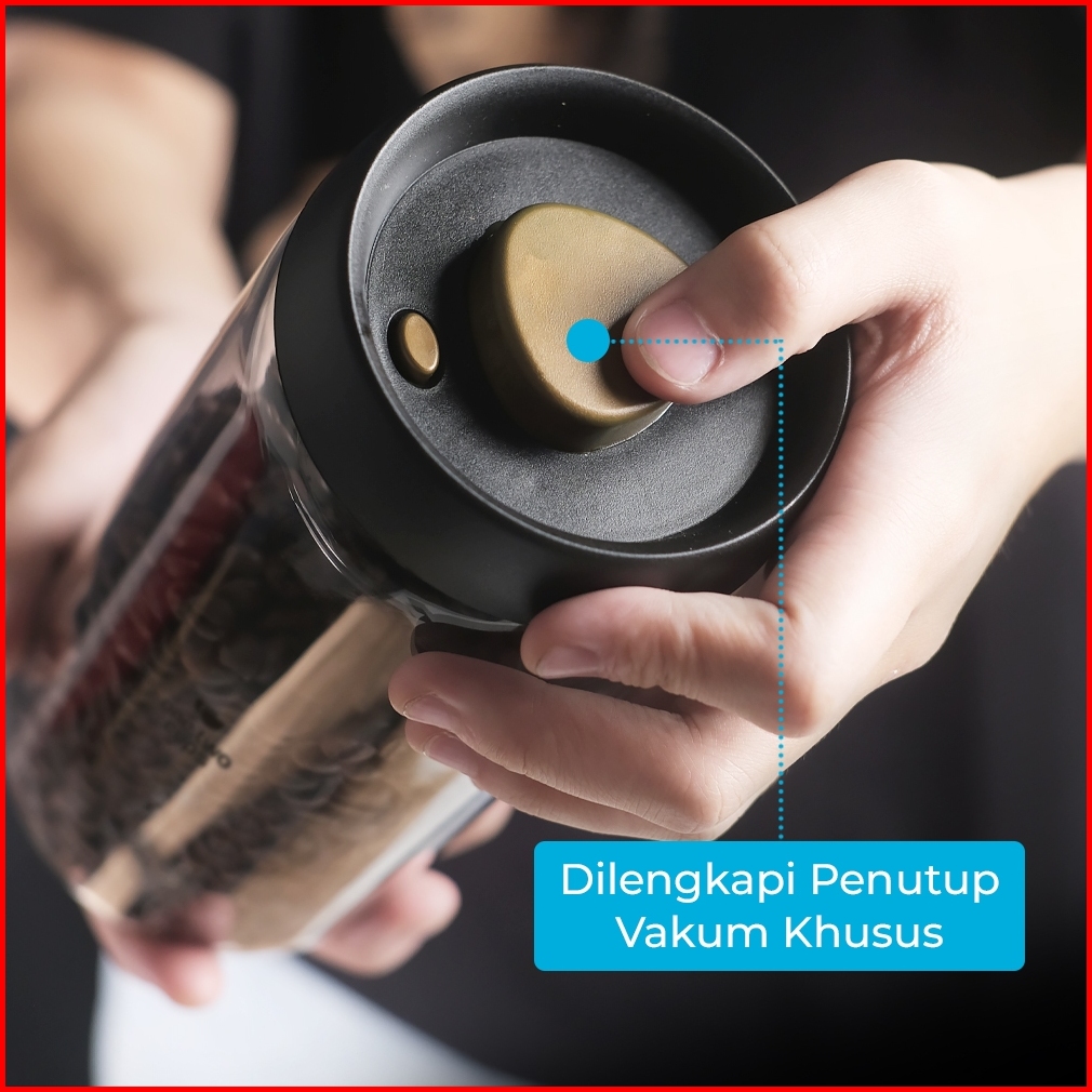 Toples Kaca Penyimpanan Biji Kopi Vacuum Sealed Lid Coffee Canister Glass Storage