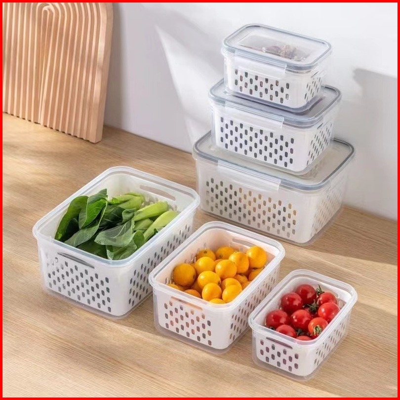 Keranjang Saringan Pengering Sayur Keranjang Buah Pengering Sayuran Saringan Serbaguna Kotak Penyimpanan Multifungsi 3in