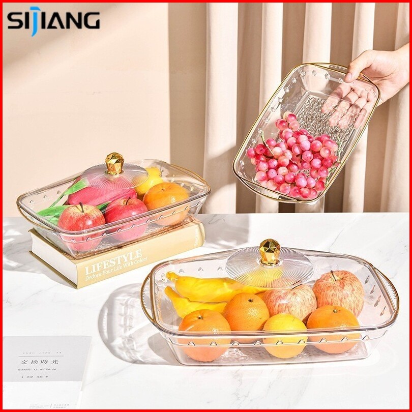 Sijiang Tempat Buah Tempat Roti Aesthetic Nampan Dengan Tutup Transparan Multifungsi Tempat Roti Multifungsi Tahan Lama