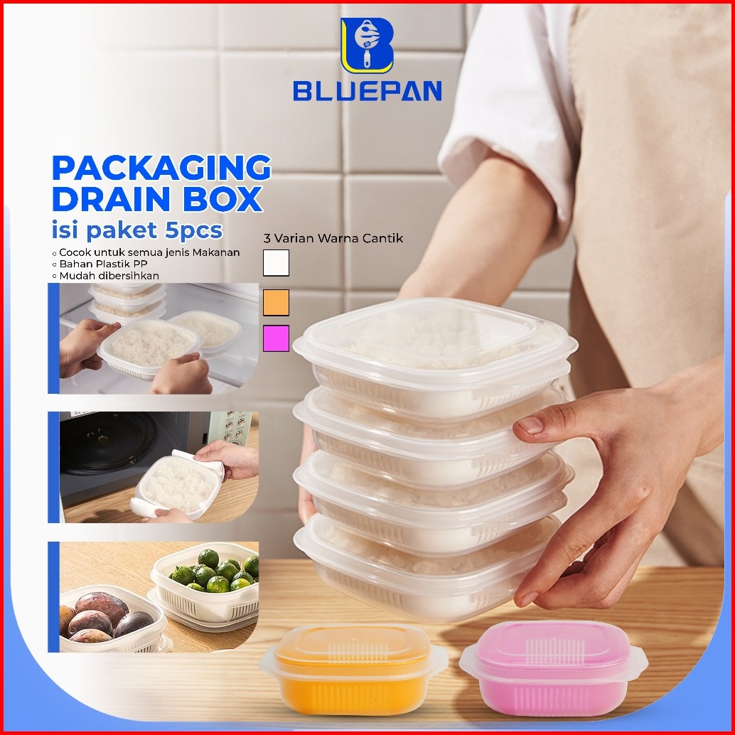 Bluepan 5 Pcs Food Organiser Strainer Kotak Makanan Jaring Anti Basah Murah Kontainer Tempat Saringan Tempat Buah Tempat