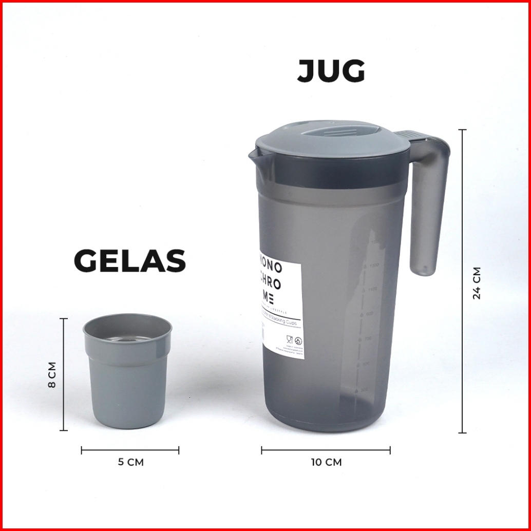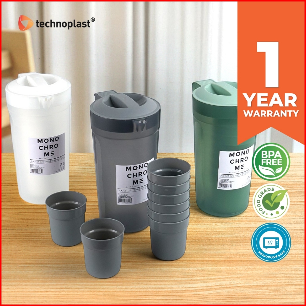 Teko Air Pitcher Water Jug Set Dengan Gelas - Technoplast Monochrome 2.2 L 8 Stacking Cups