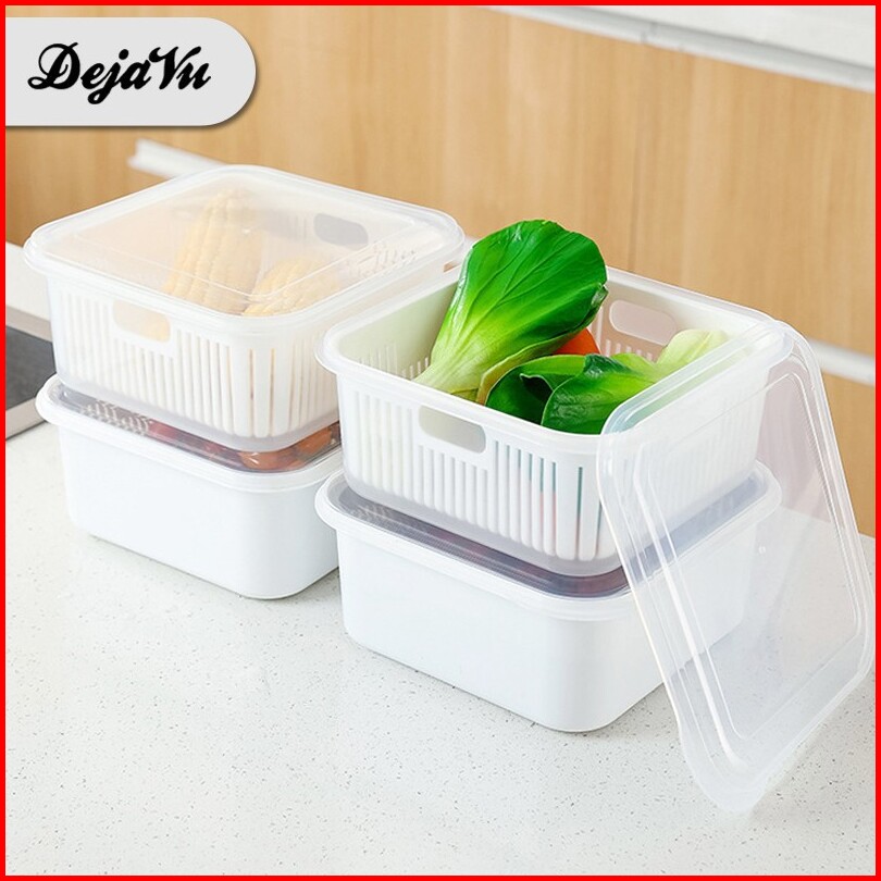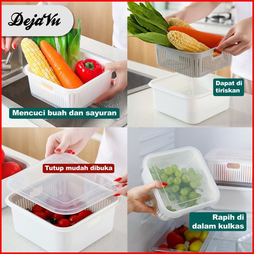 Dejavu Keranjang Buah Pengering Sayuran Saringan Serbaguna Kotak Penyimpanan Food Storage Buah Bawang Kulkas Multifungsi