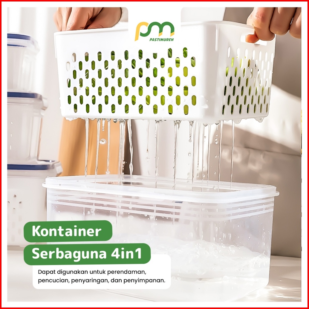 Pastimureh Kontainer Tirisan - Pengering Sayur Keranjang Buah Pengering Sayuran Saringan Serbaguna Kotak Penyimpanan Mul