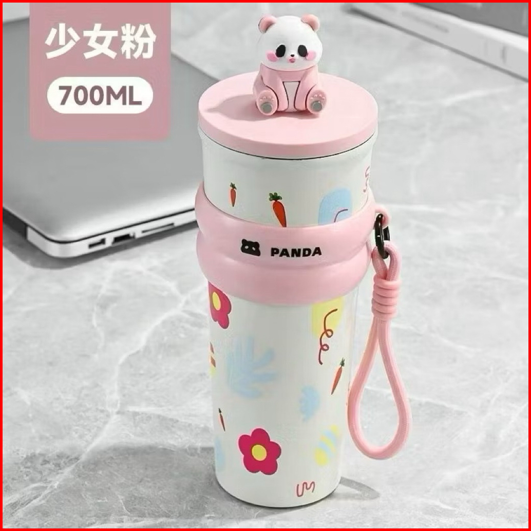 Mug Tumbler Stainless Steel Sus 304 Motif Panda Lucu 700ml Free Gantungan Boneka Panda 2113