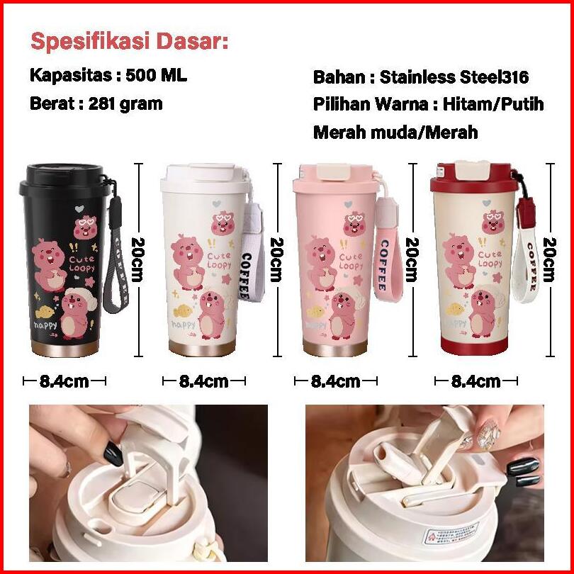 Stainless Steel Sus 304 Cup 500 Ml Termos Loopy Teh Kopi Gelas Vacum Tahan Panas Dingin Cartoon Loopy Hadiah Berharga Un