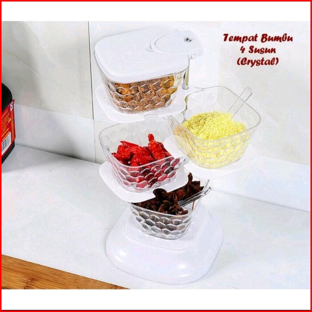 Tempat Bumbu Dapur Crystal 4 Susun Free Sendok Rak Putar Cristal Rotary Seasoning Box 4 In1 Rak Bumbu Dapur Wadah Garam
