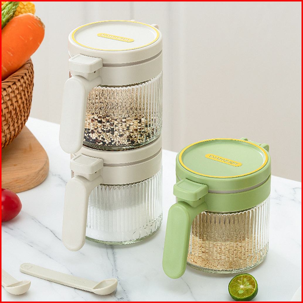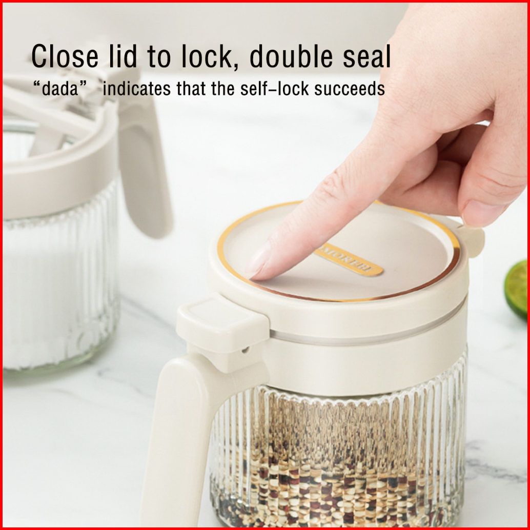 Press Seasoning Box Glass Seasoning Jar Monosodium Glutamate Seasoning Storage Sealed Moisture-proof Ration Sugar And Sa