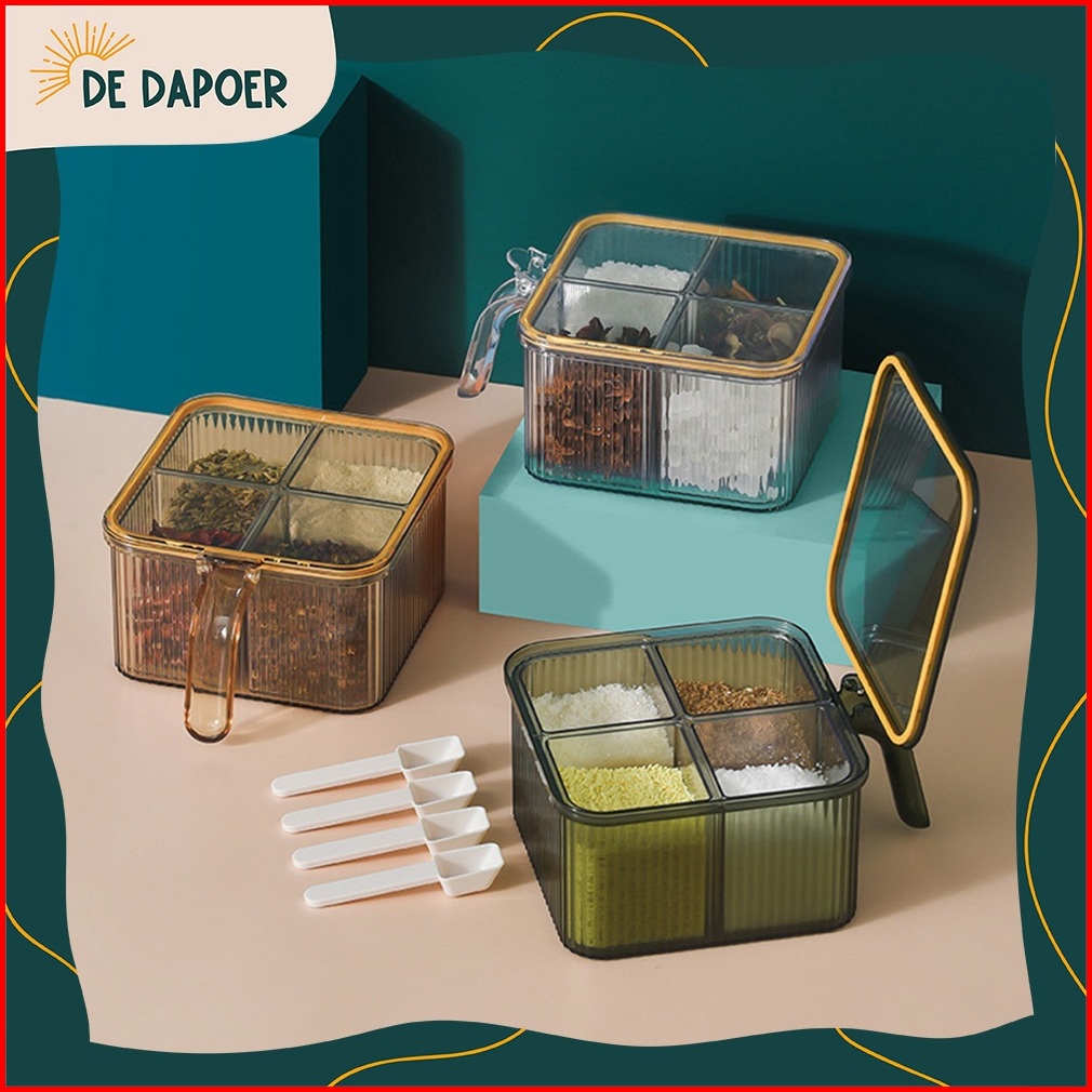 Wadah Bumbu Dapur 4 Sekat Free Sendok Tempat Garam Gula Tutup Kedap Udara Food Container