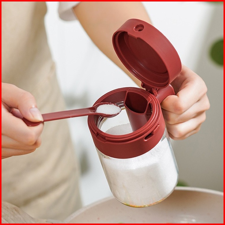 Kotak Bumbu Multifungsi Toples Bumbu Dengan Sendok Toples Bumbu Kaca Transparan Kotak Bumbu Wadah Garam