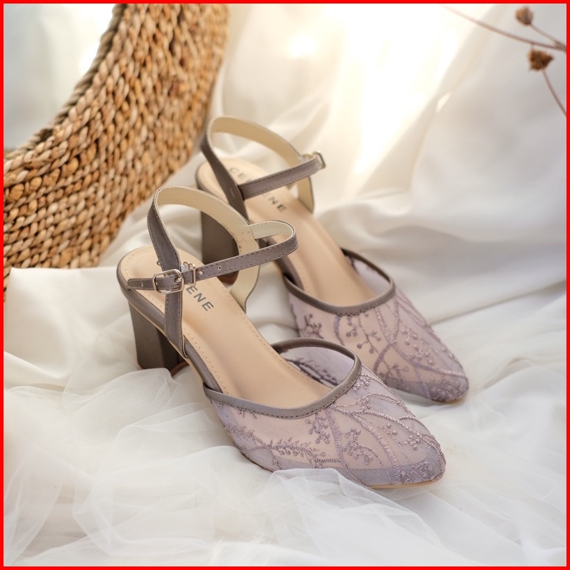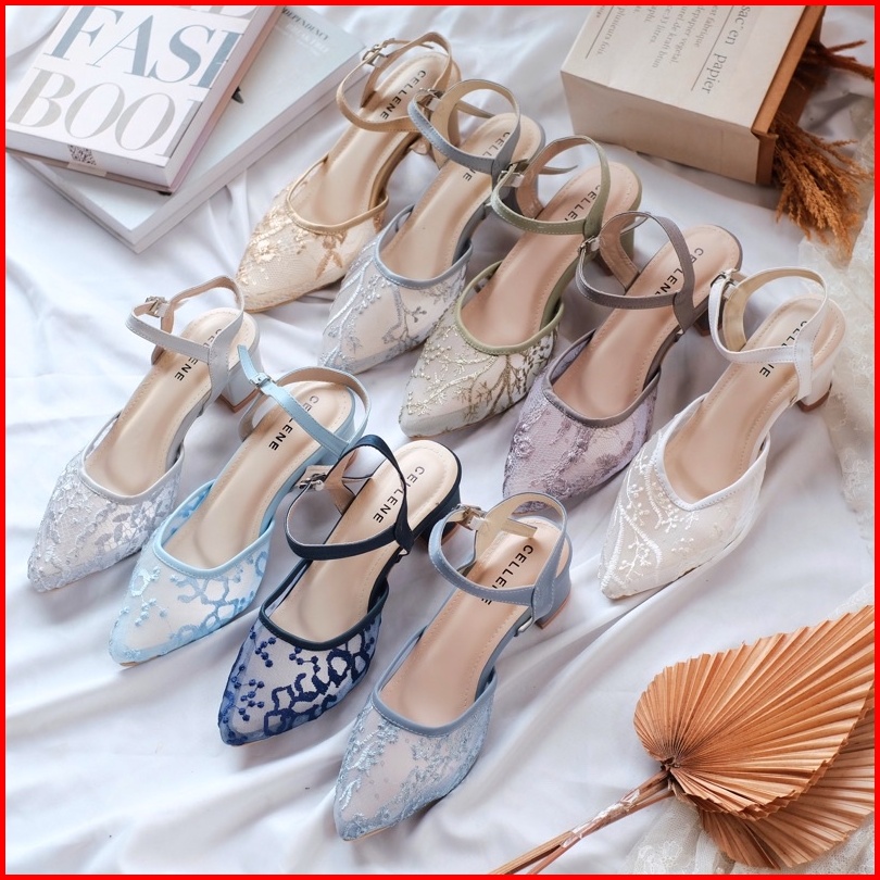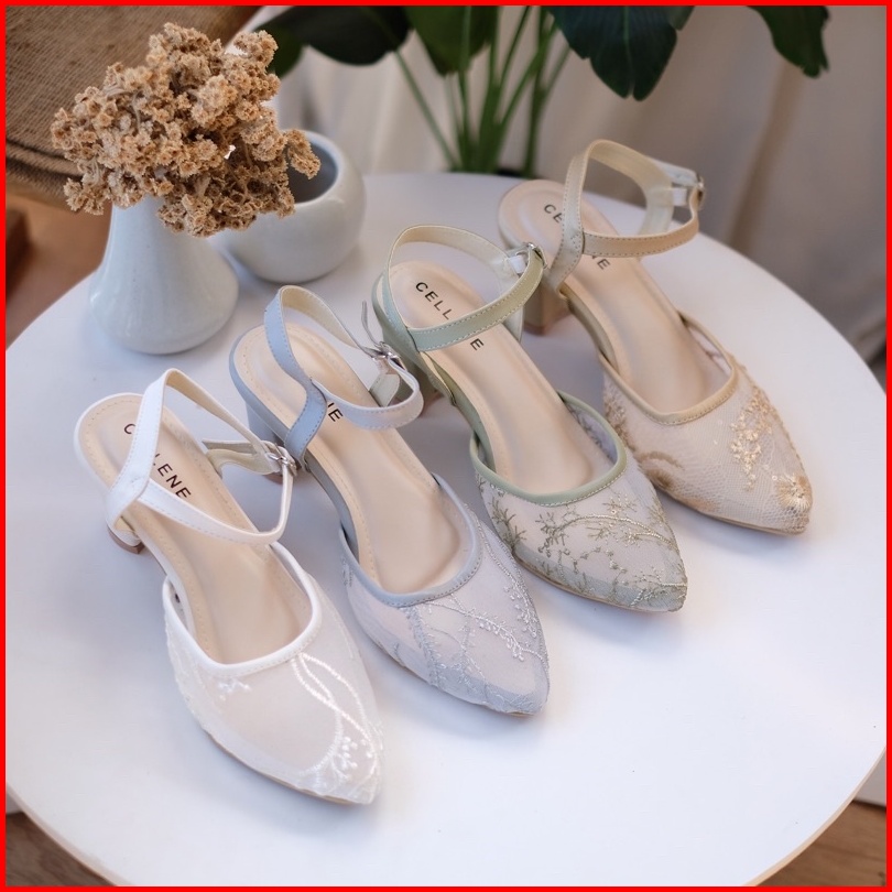 Cellene Maura Lace Heels Brukat Heels Wanita 7cm 5cm Wedding Shoes
