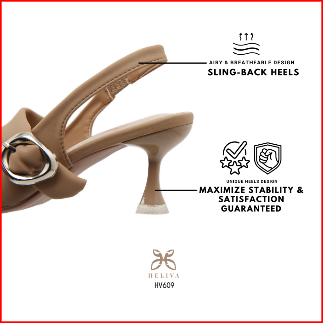 Heliva Lorelia Slingback Heels Wanita 6cm Elegant Buckle Hv609