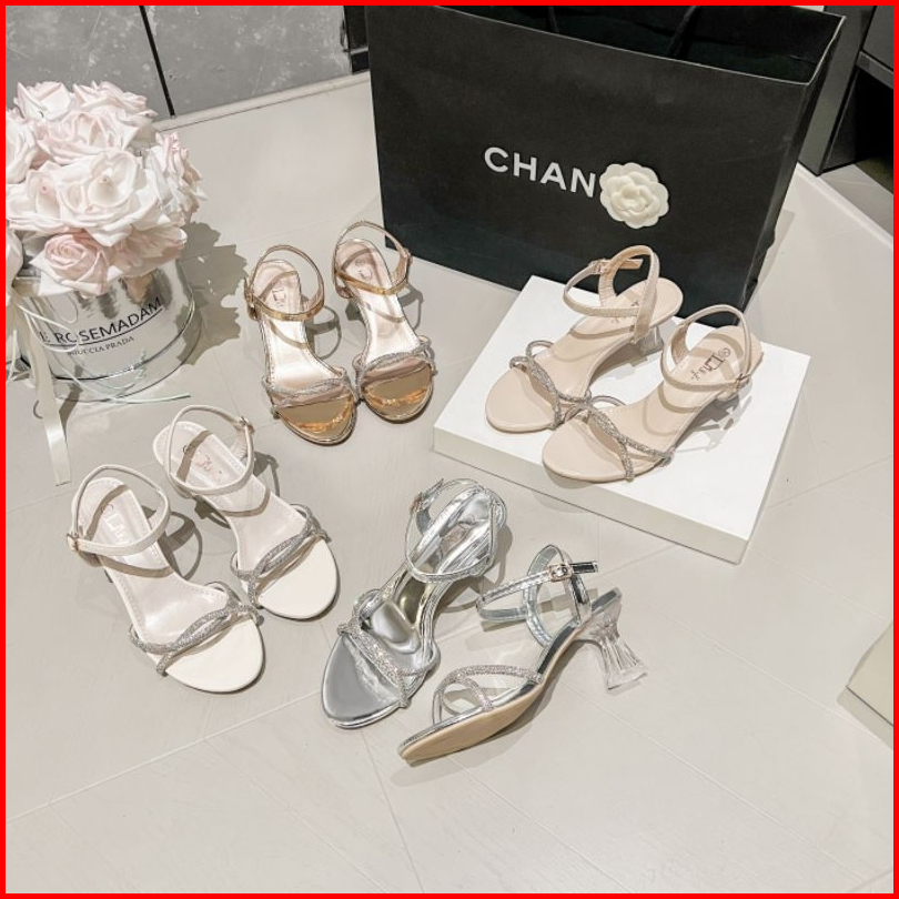 Rhinestone Sandals 2 Inches Strap Crystal Wanita High Heels