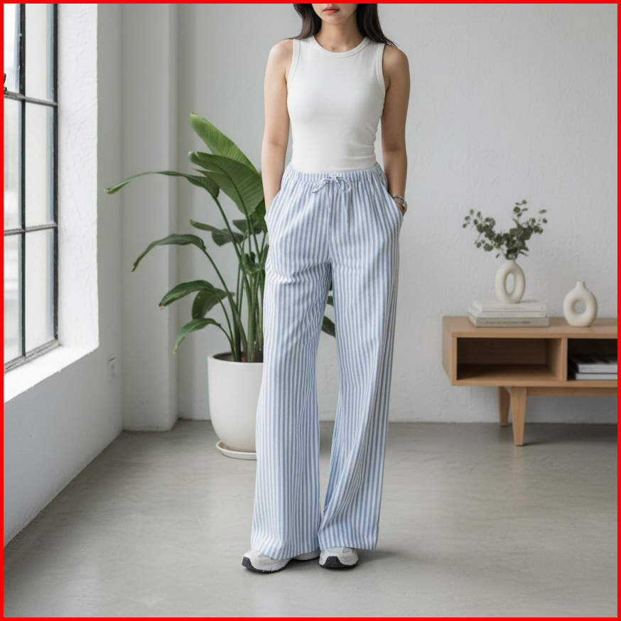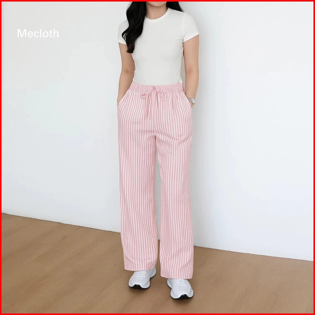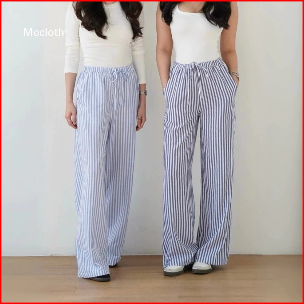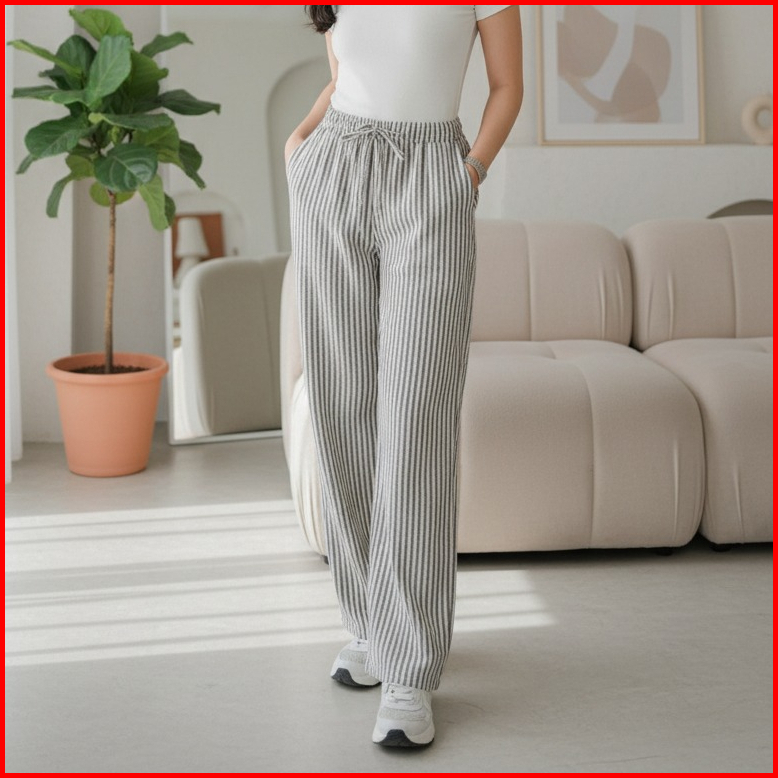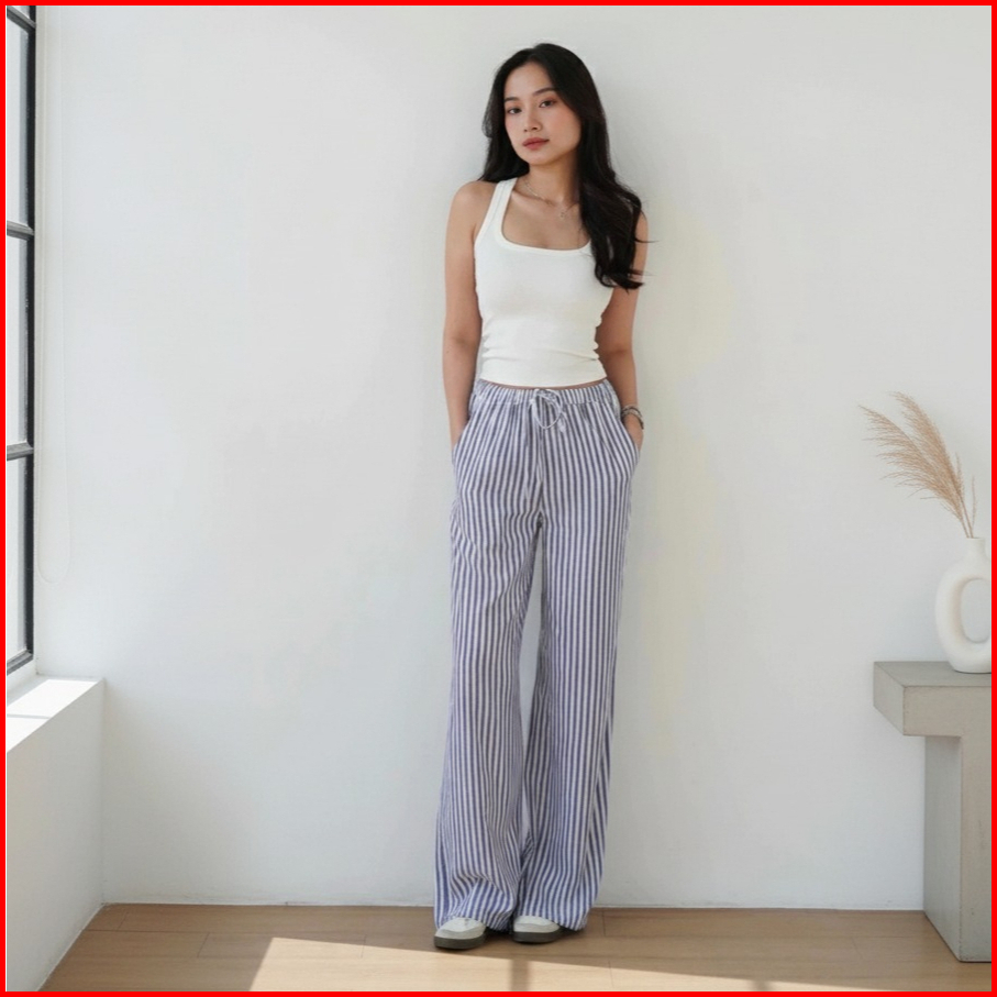 Everyday Pants - Stripe Pants Bangkok - Celana Panjang Wanita Baggy Kantor Kuliah Motif Garis Kulot Pinstripe