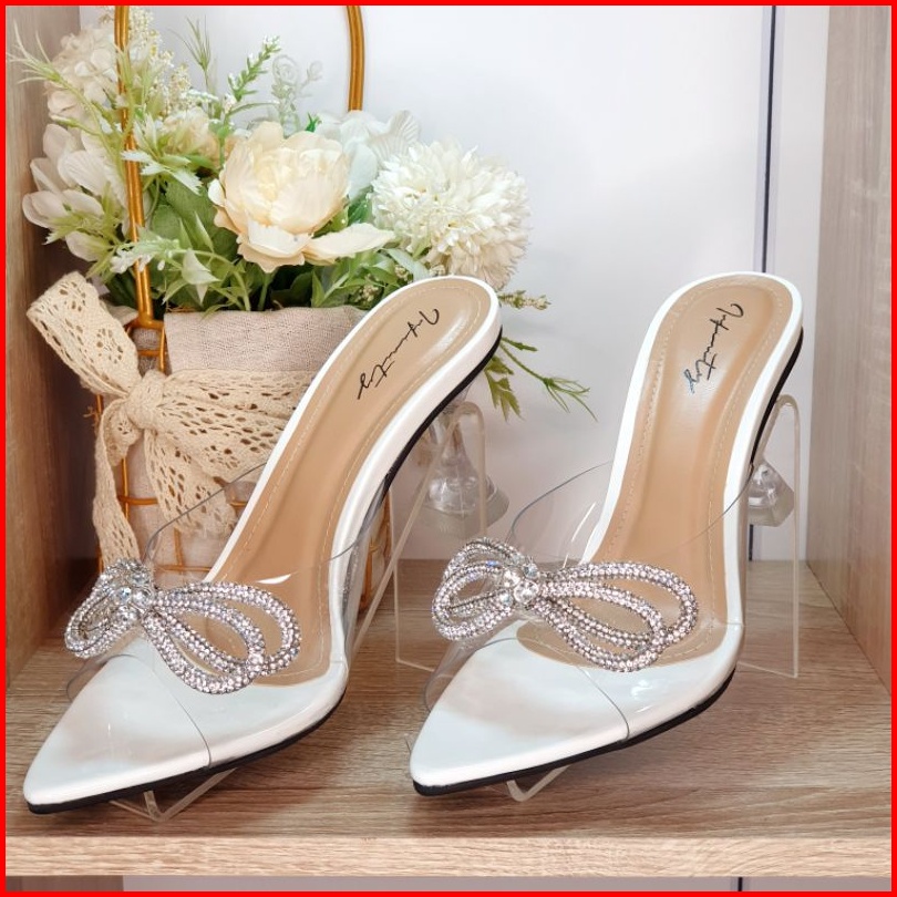 Sandal Hak Kaca 7cm Infinity Clear Mules Jn 208 Heels Pesta Graduation Kondangan