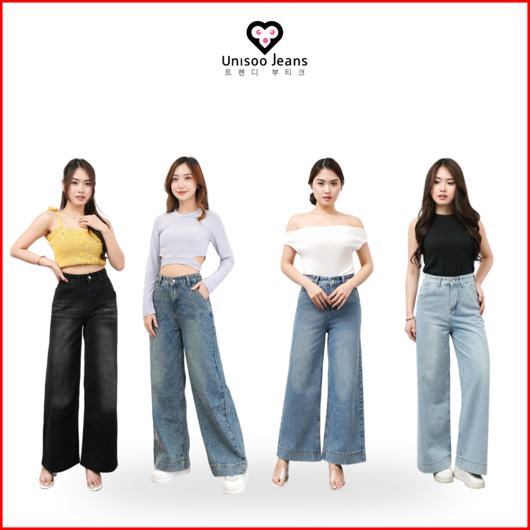 Unisoo Jeans - Ck8007 Celana Jeans Highwaist Celana Jeans Kulot Jeans Wanita Highwaist Loose Jeans Wide Leg Jeans
