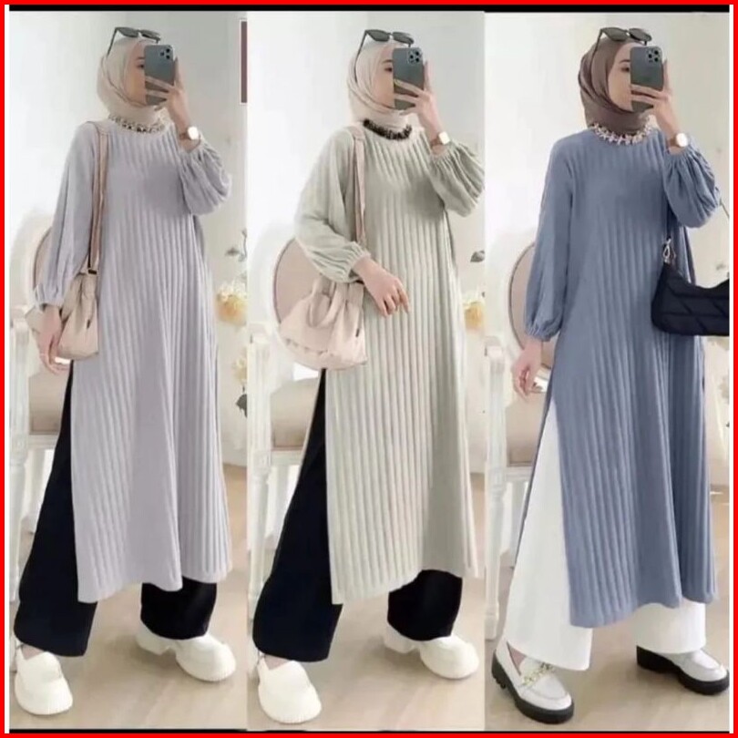 Elegant - Kimia Long Dress Tunik Hornet Knit Premium Wanita Terbaru
