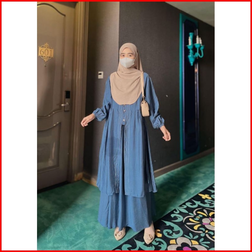 Tina Hijab - Set Tunik Fatma Setelan Tunik Baju Muslim Bahan Linen