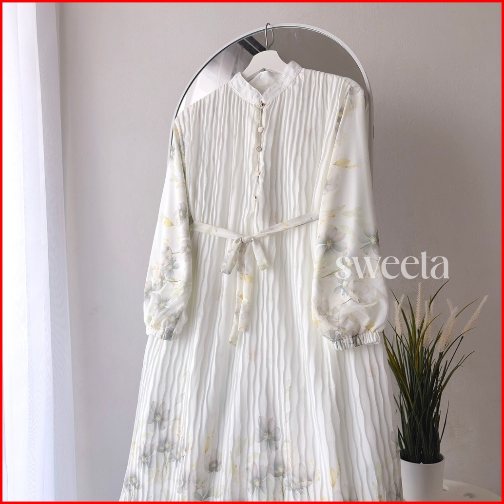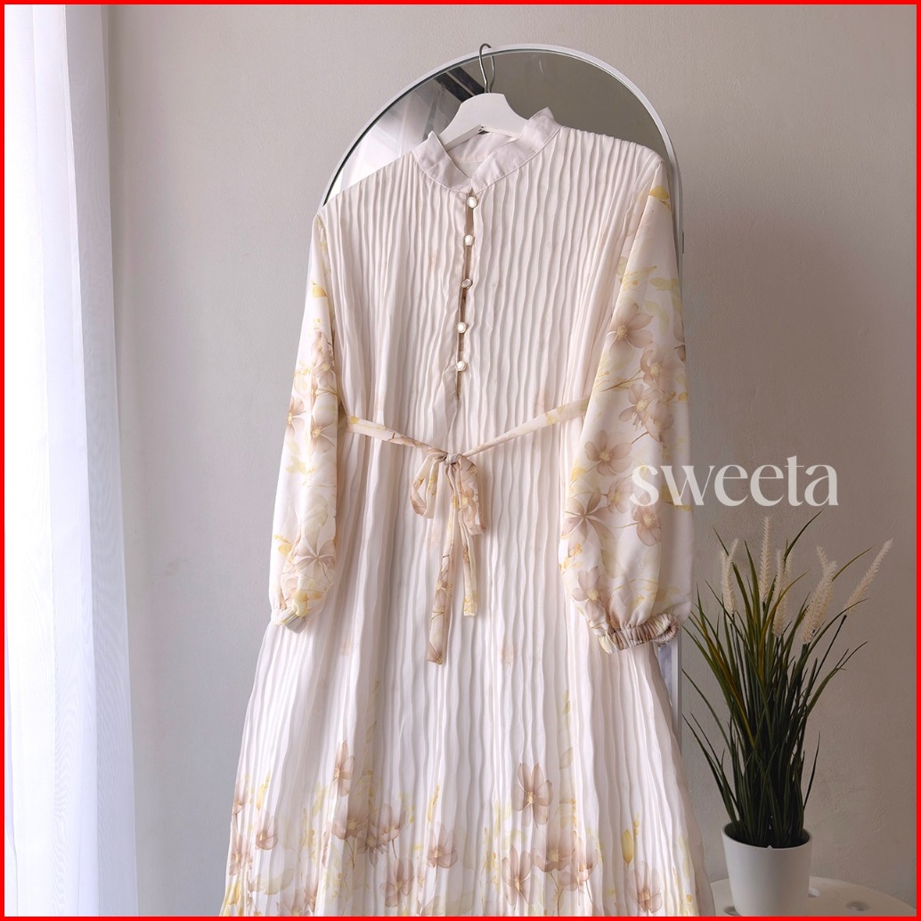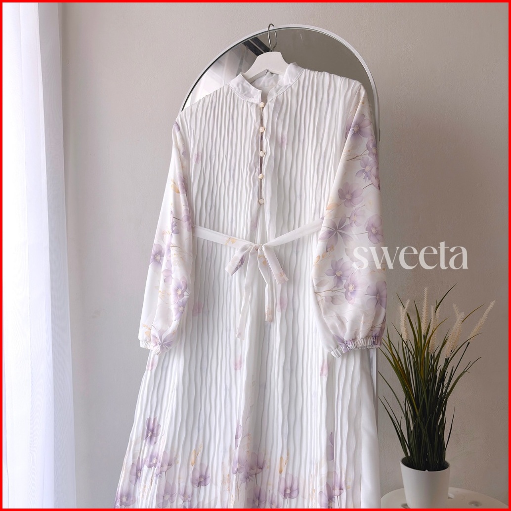 Sweeta Tunik Plisket Motif Flower Ceruty Dengan Furing Ld 110 Cm Pakaian Wanita Muslim