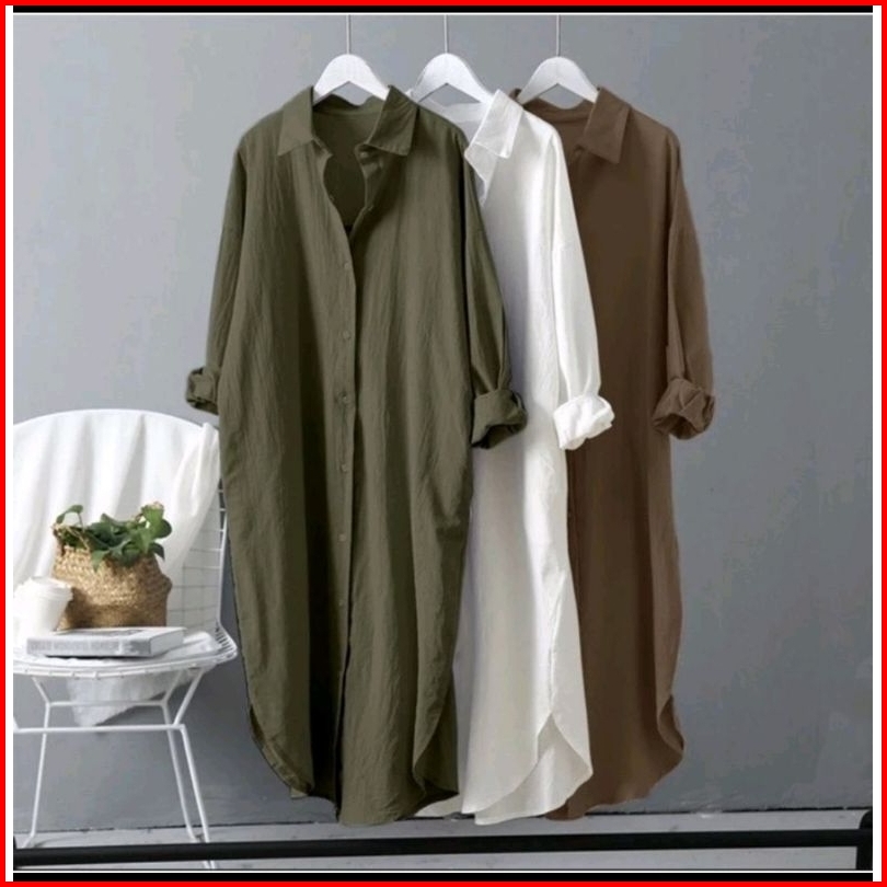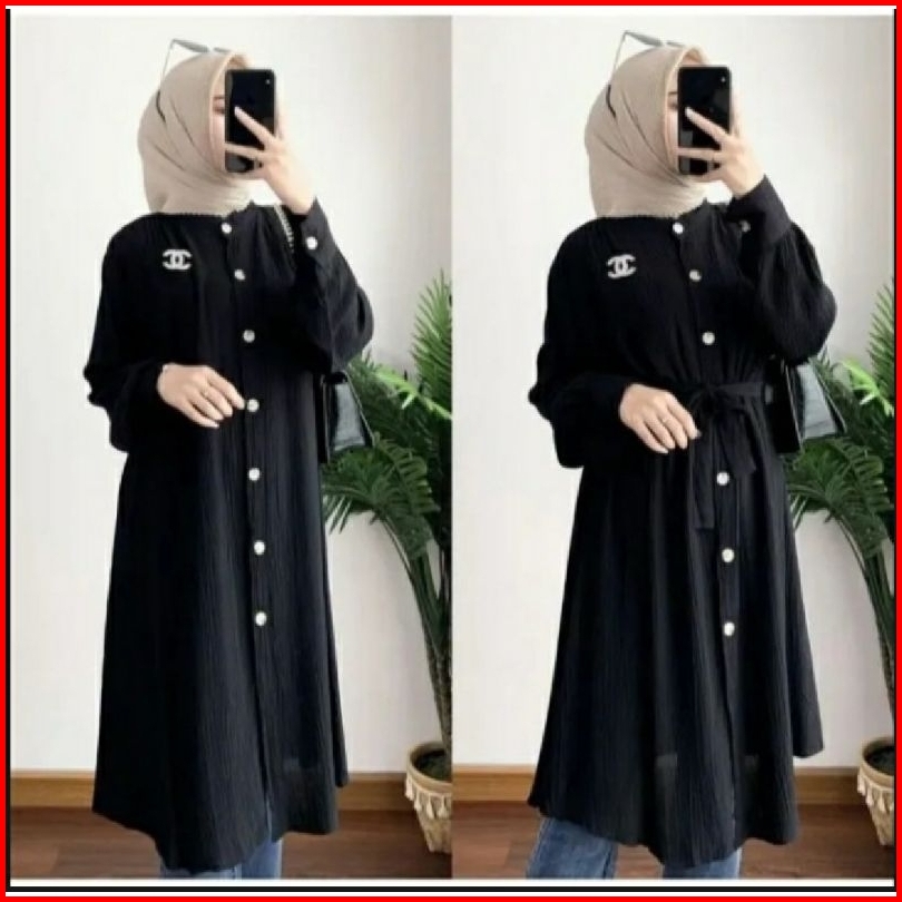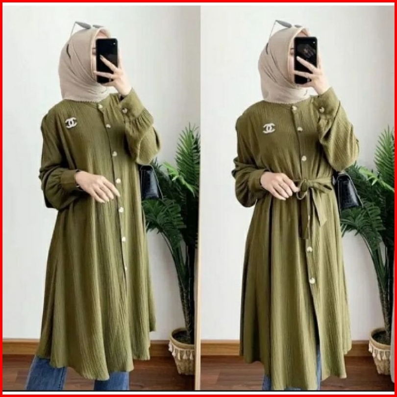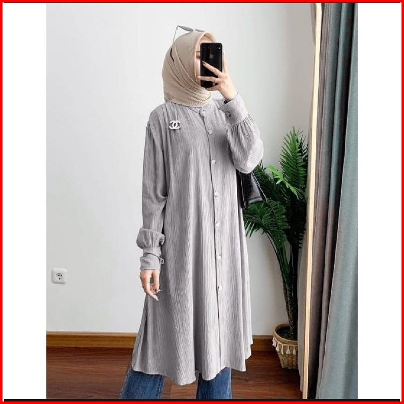 Tunik Basic Cringkel Airflow Crocos Long Tunik Full Kancing Depan Atasan Wanita Muslim Kekinian Tunik Crinkle Busui Frie