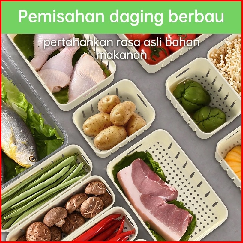 Blessed Living - Kotak Penyimpanan Makanan 4 Kotak Multi-fungsi Kotak Buah Sayuran Dengan Saringan