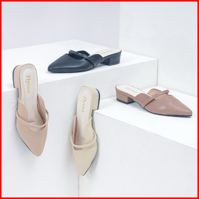 Sandal Wanita Heels Slop Mules Hak 3cm Sandal Kekinian