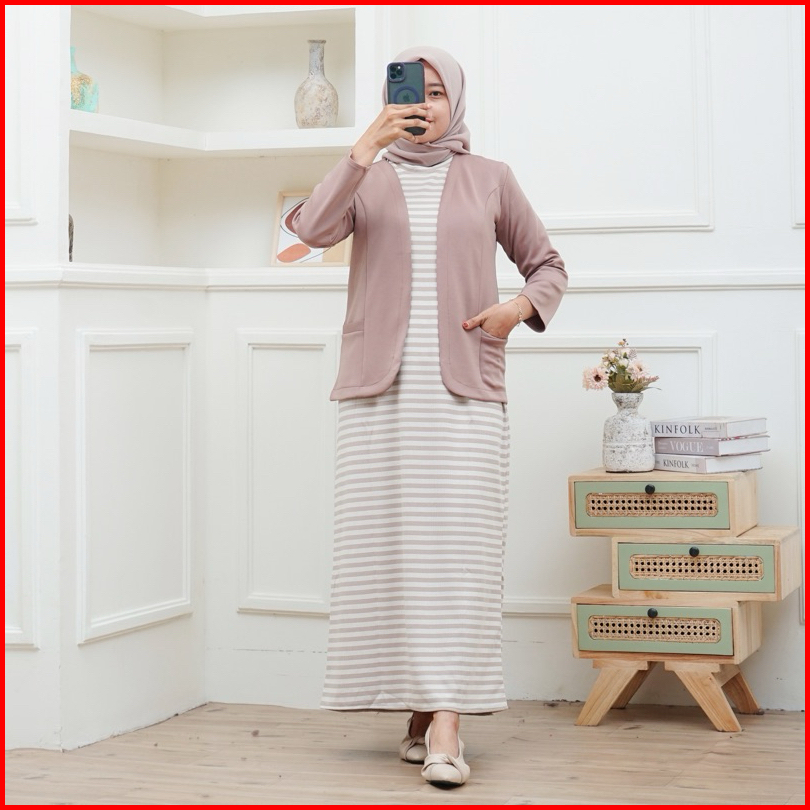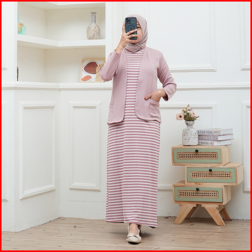 Inner Dress Tanpa Lengan Bahan Knit Premium Inner Salur Terbaru