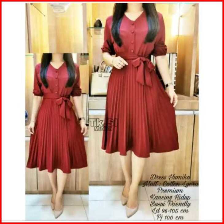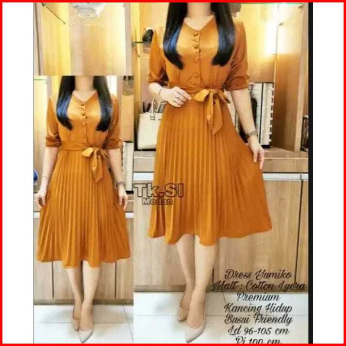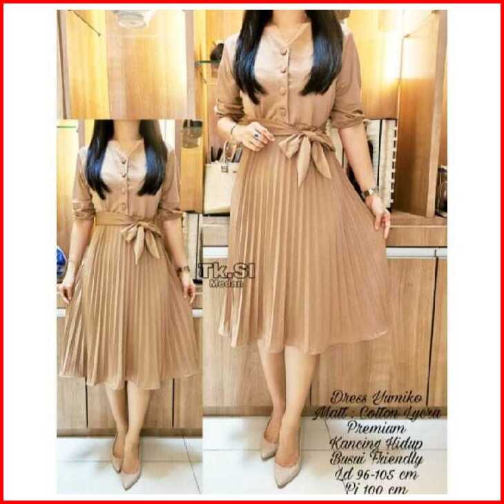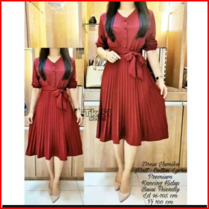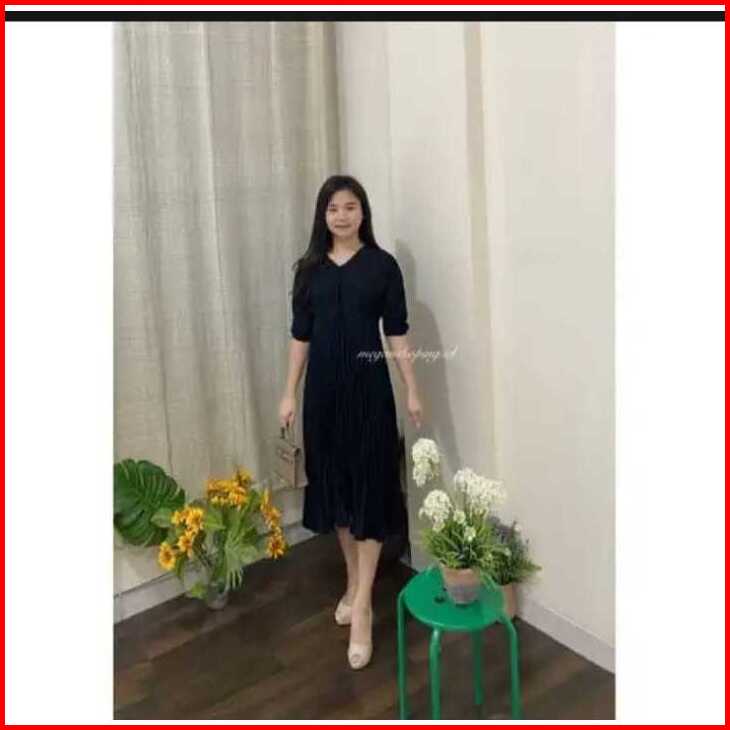 Murah Dress Midi Wanita Terbaru Dress Plisket Cotton Premium Combi Dress Korea