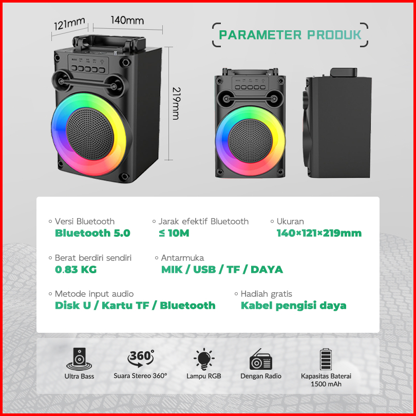 Speaker Bluetooth Karaoke 4 Inch 2 Mic Super Bass Protable Salon Aktif Bt Hi-fi Zqs1455