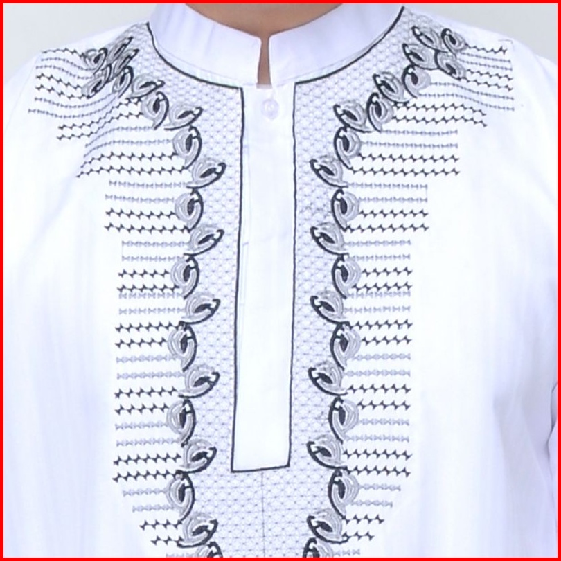 Gamis Jubah Pria Putih Lengan Panjang Bordir Dada Benang Hitam