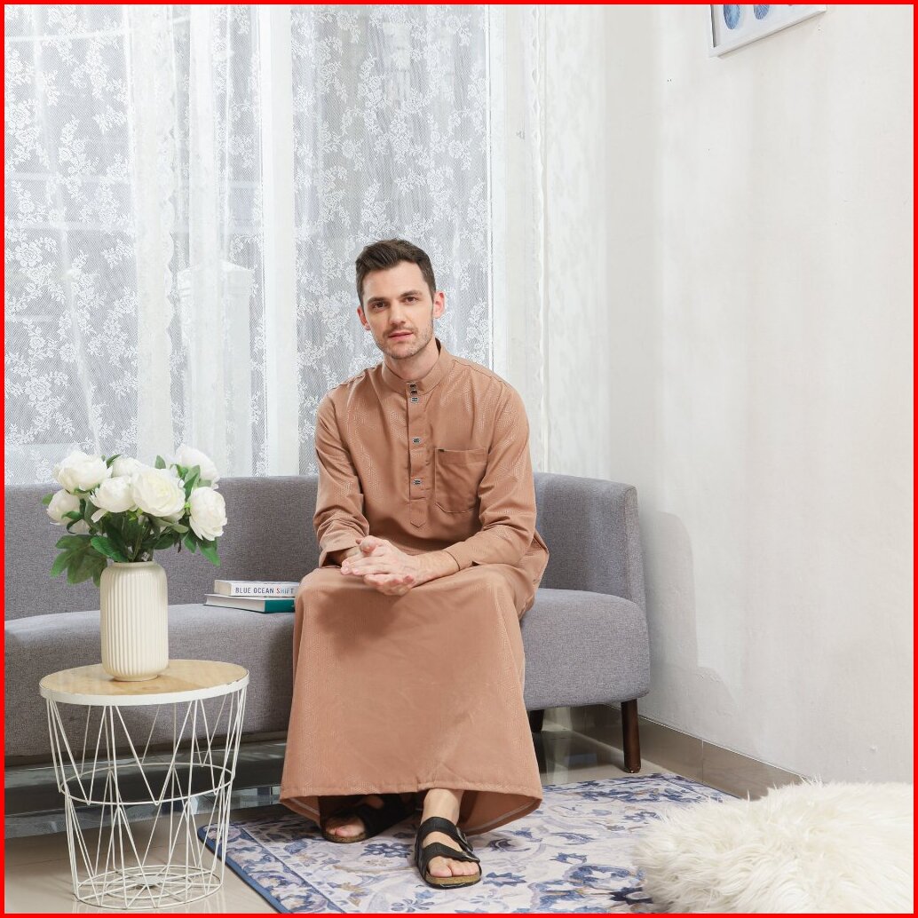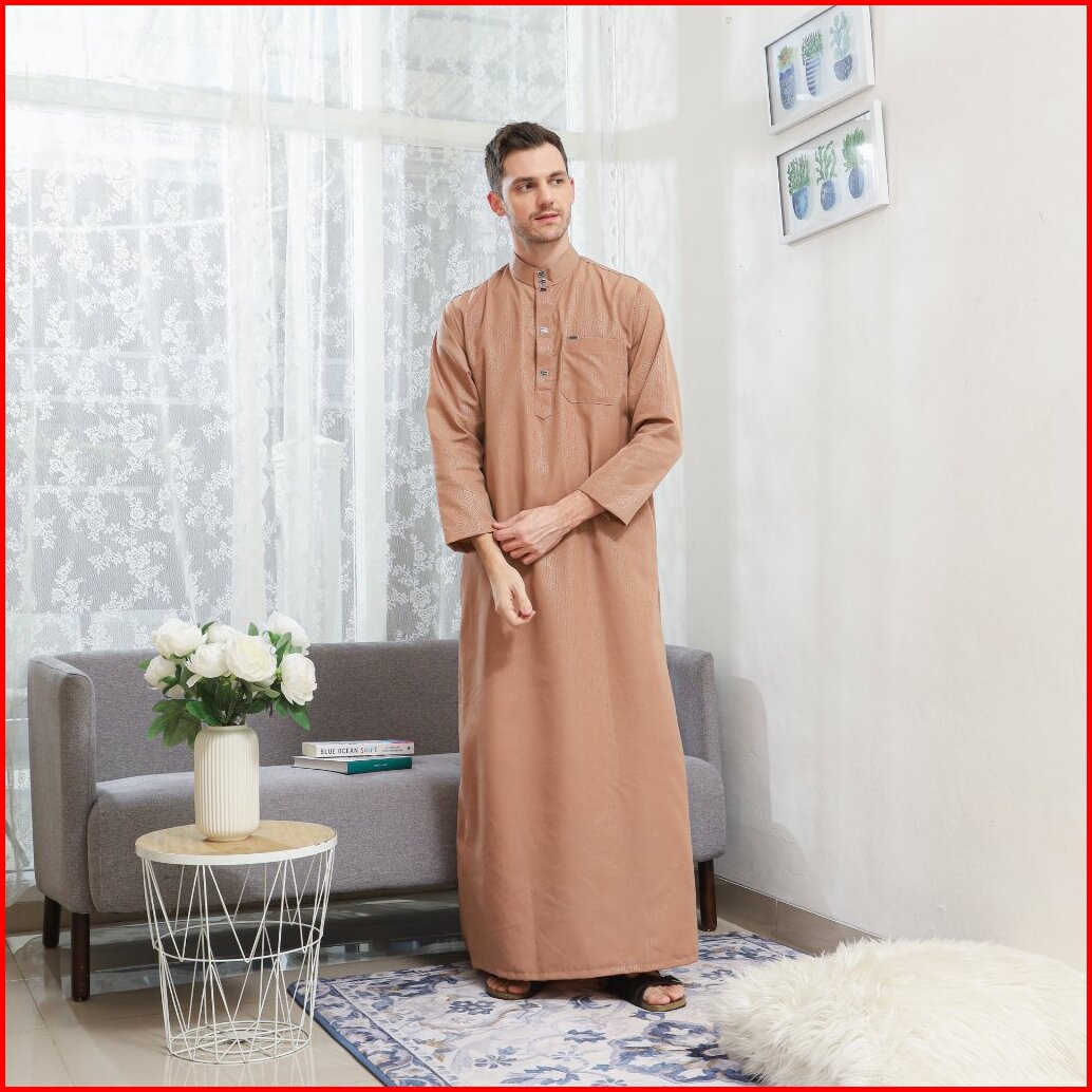 Jubah At Tarim Gamis Laki-laki Lengan Panjang Bahan Embos Anti Gerah Thobe Arab Mewah Terbaru Fashion Muslim