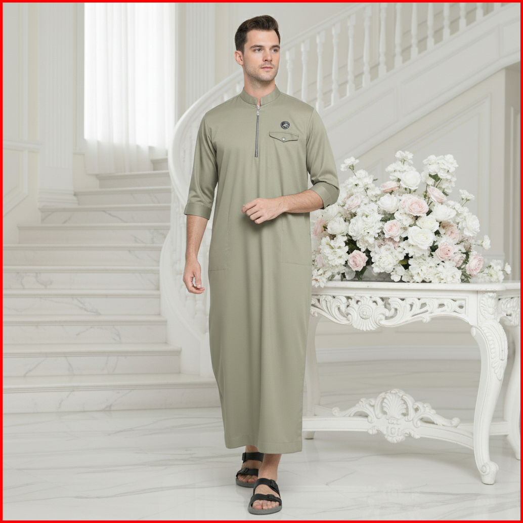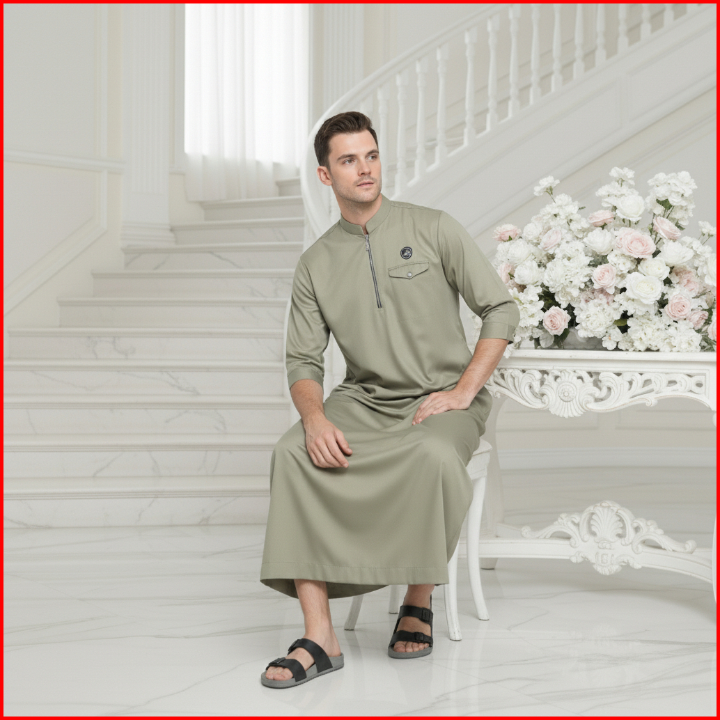 Jubah Polos Lengan 3 Per 4 Gamis Pria Dewasa Katun Toyobo Premium