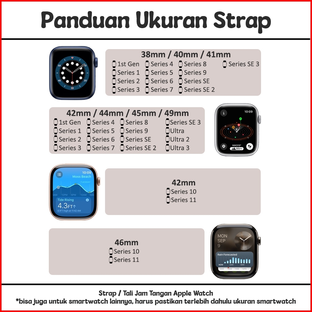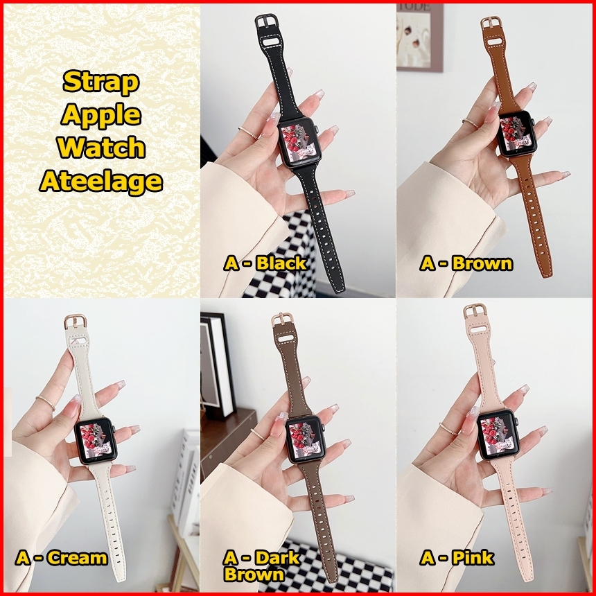 Strap Apple Watch Ateelage Bahan Kulit Leather Series 1st 1 2 3 4 5 6 7 8 9 10 11 Se Se2 Se3 Ultra Ultra2 Ultra3 38mm 40
