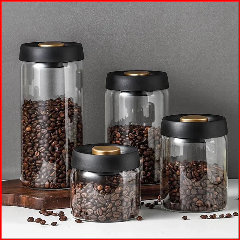 Trosten Coffee Beans Vacuum Glass Canister Toples Kaca Tebal Biji Kopi Tutup Vakum Toples Makanan Kedap Udara Snack Cani