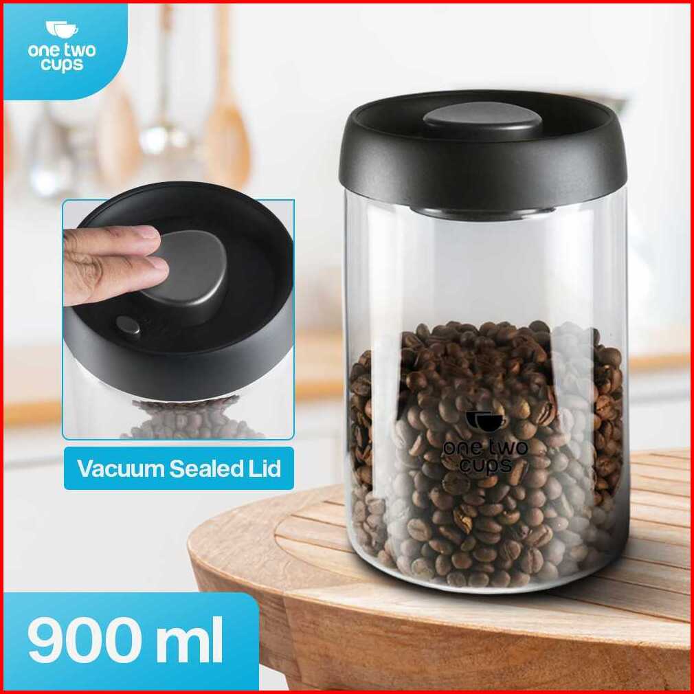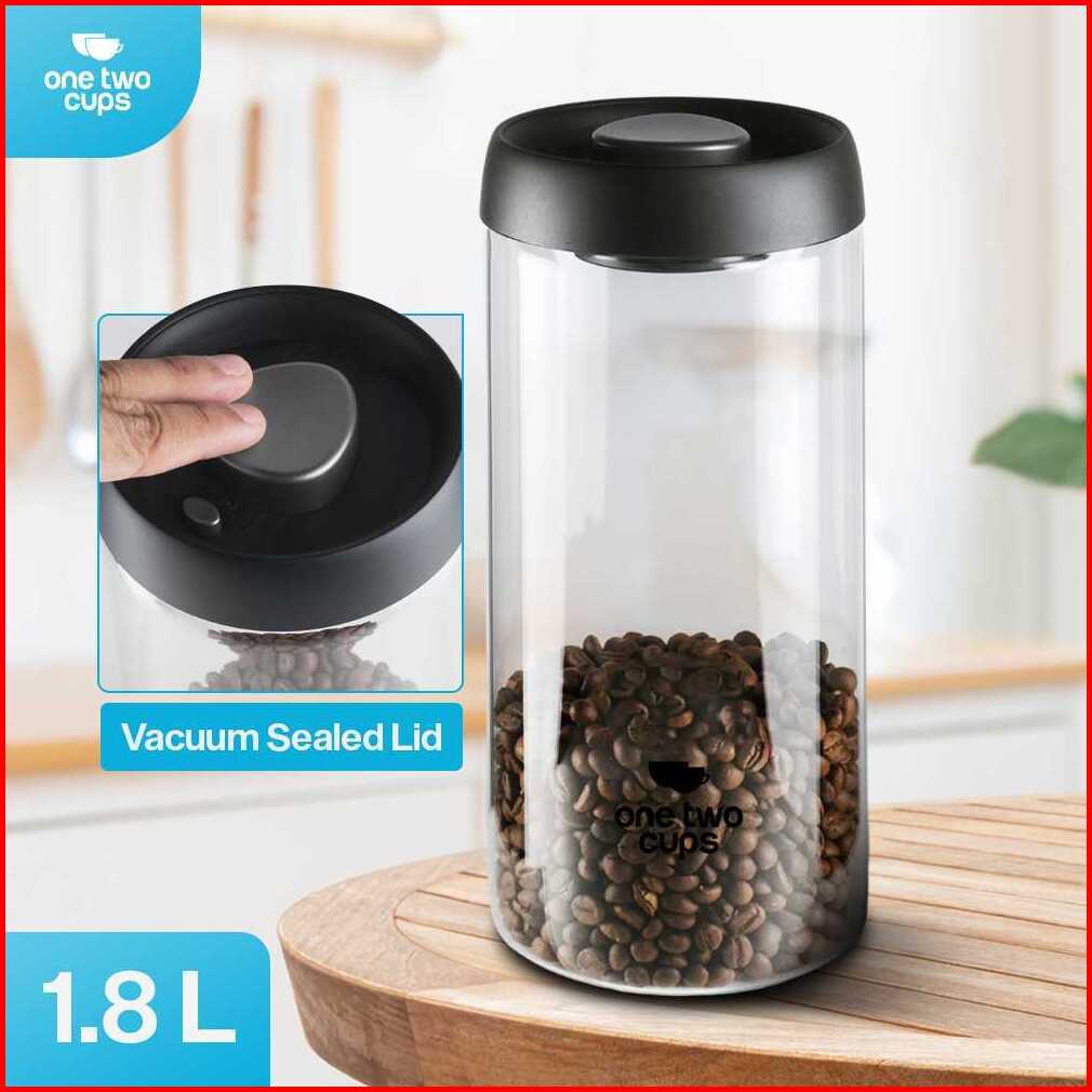 One Two Cups Toples Kaca Biji Kopi Coffee Beans Vacuum Sealed Lid - Se41-hitam