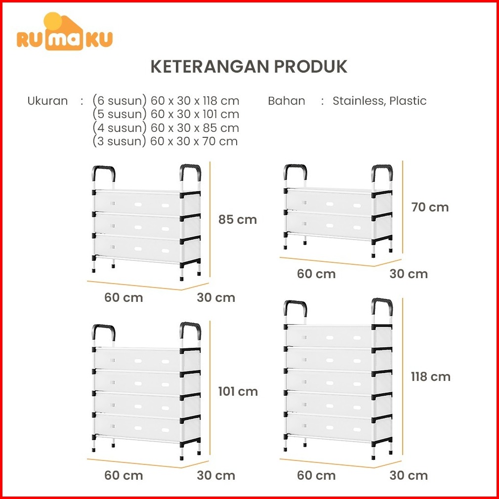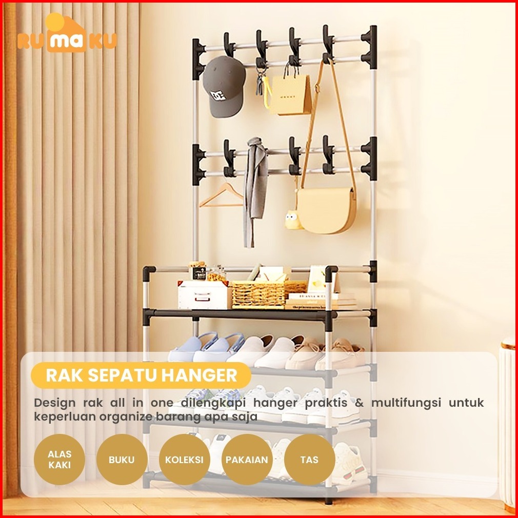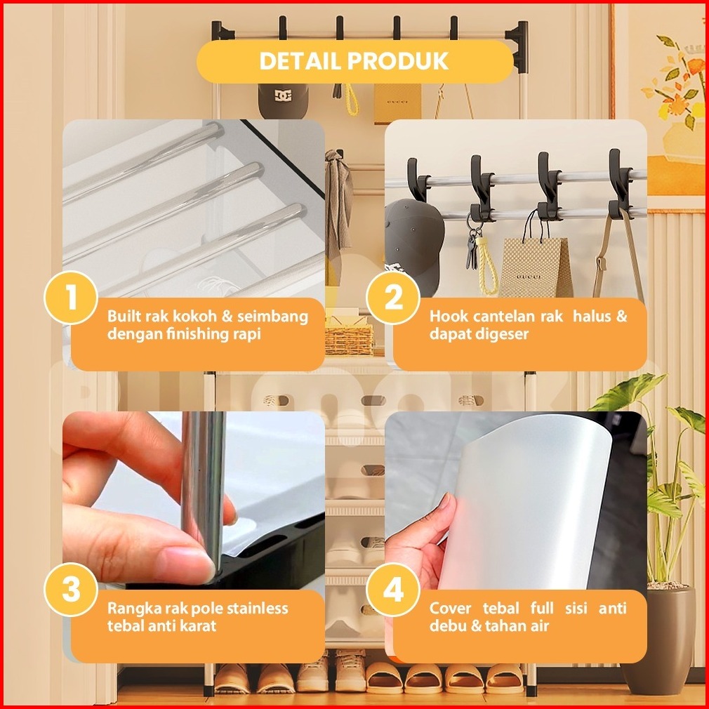 Rumaku Rak Sepatu 6 Susun Tertutup Dengan Tempat Penyimpanan Gantungan Tas Topi Serbaguna Anti Debu
