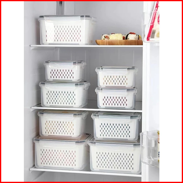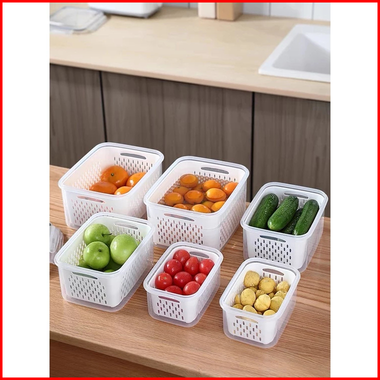 3pcs 6pcs Keranjang Saringan Pengering Sayur Buah Serbaguna Kotak Penyimpanan Multifungsi Kulkas