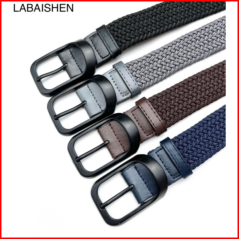 Labaishen Sabuk Ikat Pinggang Pria Modis Simple Ikat Pinggang Jalin Elastis