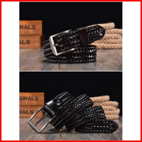 Free Box Kulit Asli Ikat Pinggang Pria Kulit Anyam Kepang Original Kulit-sabuk Pengikat Pinggang Kulit Asli