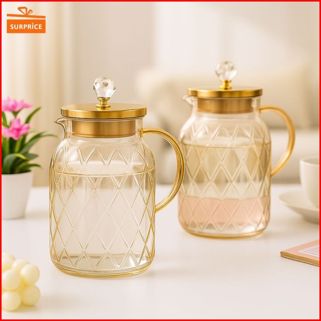 Surprice Komplit Teko Air Portable Drink Water Jar Teko Aesthetic Teko Borosilikat Teko Diamond Teh Pitcher 1500 Ml Dan