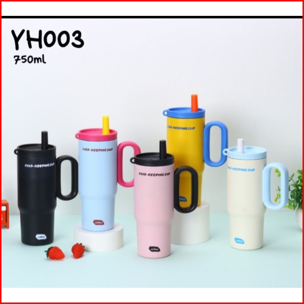 Tumbler Stainless Vacum 750ml Portable Thermos Botol Minum Besar Aesthetic Tumbler Denga Sedotan Tahan Panas Dingin Best