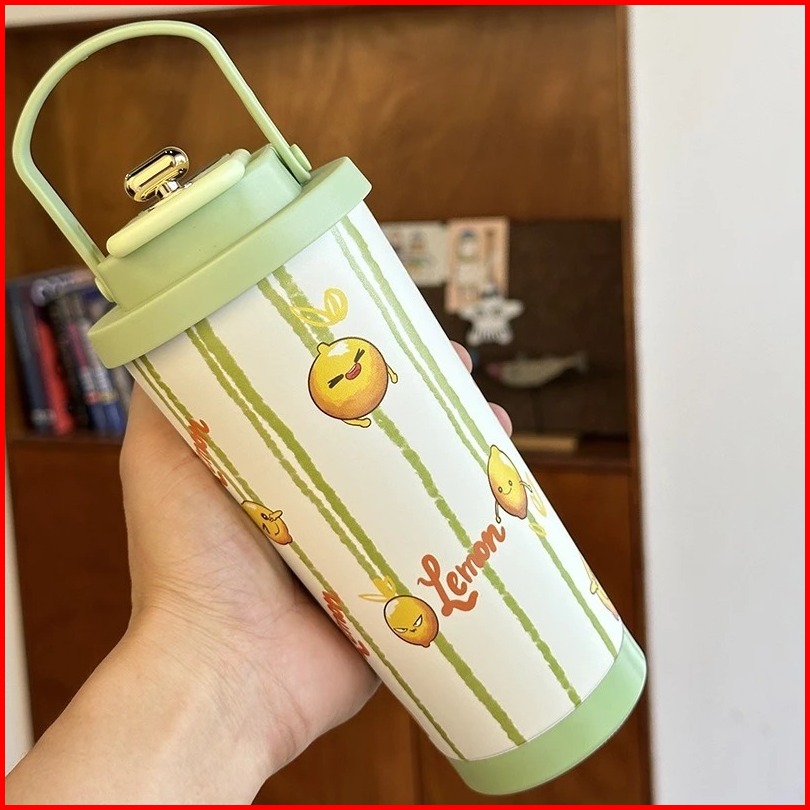 Termos Cup Led Stainless Sus 304 Kapasitas 500ml Mug Gagang Stainless Motif Buah Lucu T 2278