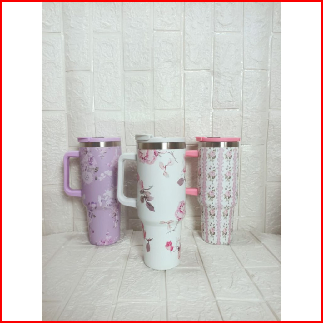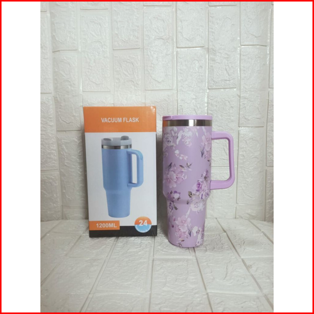 Allneeds Tumbler Gagang Motif Bunga 1200 Ml Stainless Steel