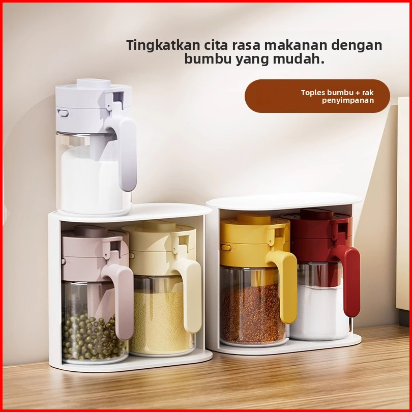 Botol Tempat Bumbu Modern Dengan Tutup Adjustable Dan Sendok