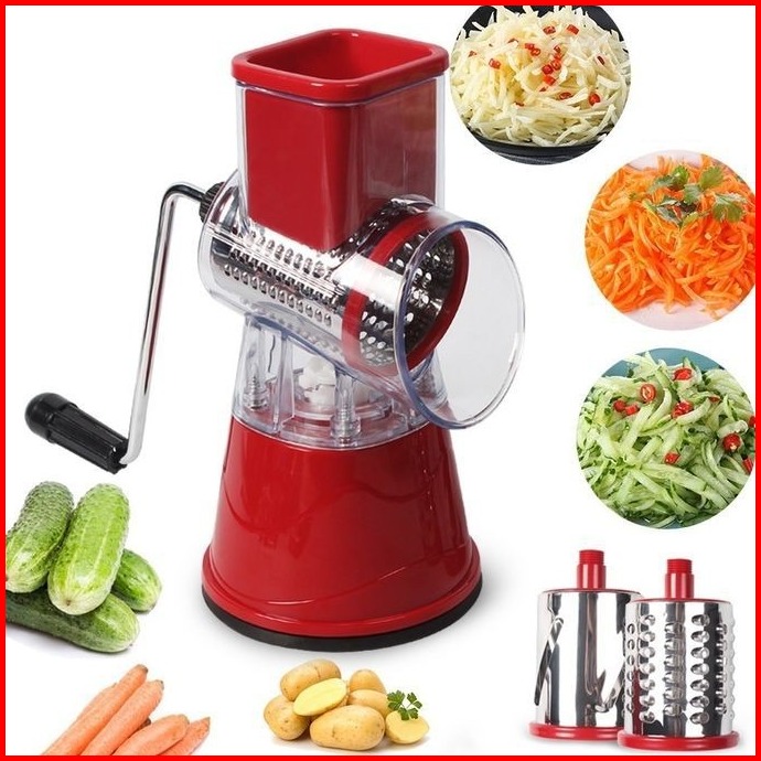 Parutan Pengiris Pemotong Putar Buah Sayur Dan Bawang Manual 3 Pisau 1 Handle Serbaguna Anti Slip Lemarimurah168